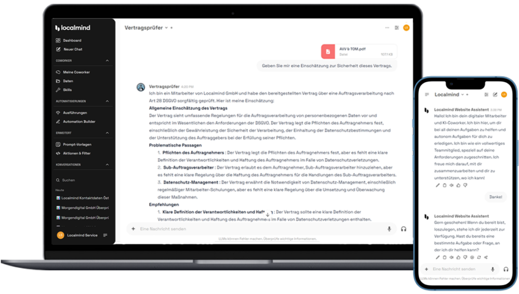 Mit Localmind behältst du die volle Kontrolle über deine Daten und Prozesse – für maximale Flexibilität und Unabhängigkeit von externen Cloud-Diensten.