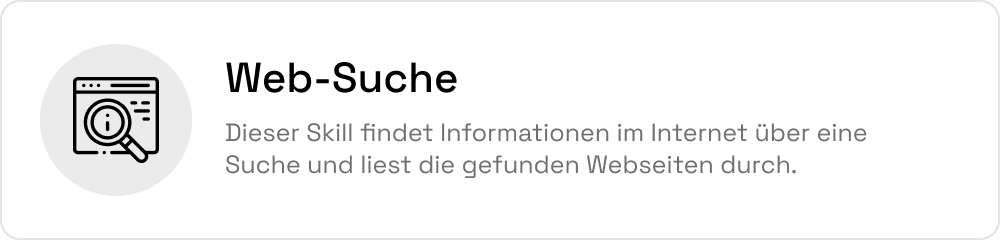 Mit Skills kann deine KI aktiv Aufgaben ausführen, externe Tools nutzen und sich nahtlos in deine Prozesse integrieren, z.B. Termine vereinbaren oder Daten in deinem CRM suchen.