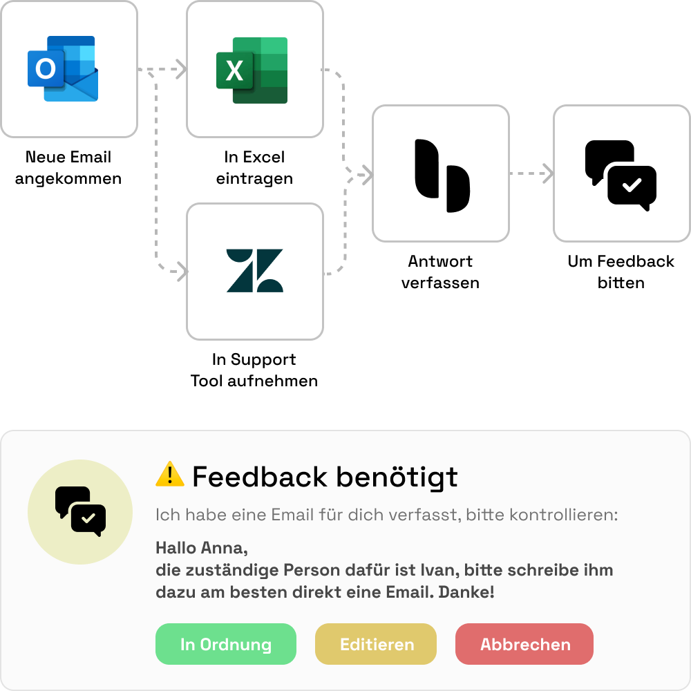 Ermögliche deinen Mitarbeitern eine einfache Interaktion mit der KI und deinen Coworkern, so wie sie es mit Menschen oder bestehenden KI-Systemen gewohnt sind. Schreiben oder sprechen? Beides geht.