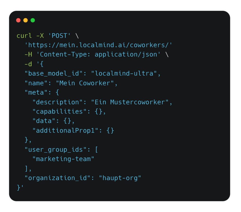 Nutze Localmind als dein intelligentes Backend. Integriere KI-Funktionen in deine eigenen Anwendungen, steuere Agenten und verwalte Wissen über unsere leistungsstarke REST API.